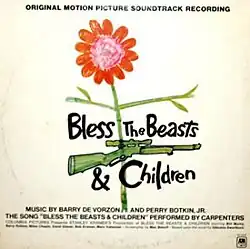 Note that there are three "Bless the Beasts and Children" tracks. All three are different, and have three different run times. The first one is the 3:07 vocal version, and #4 and #6 are both about 2:12. Track four has a version that is a hybrid between "Cotton's Dream" and "Bless the Beasts and Children". Track #6 is a very different version, with strings playing the melody.[2] It has never been released on CD, and is currently only available on now-out of print vinyl records. A re-release of the 2:12 version (A&M 1890) reached #17 in Canada's RPM Magazine MOR chart, April 16, 1977.[3]