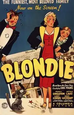 The Blondie film series is an American comedy film series based on the comic strip of the same name, created by Chic Young. The series featured Penny Singleton as Blondie Bumstead and Arthur Lake as Dagwood Bumstead. Concurrent with the films, the same cast reprised their roles in the Blondie radio series.[1]