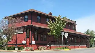 At the time of construction, the depot was a simple rectangle, 163 feet (50 m) long and 35 feet (11 m) wide. It was greatly expanded in 1922 by the addition of a second story to much of the building. The northernmost portion of the building was removed in 1959, because falling freight traffic no longer required such a large building.[3]: 2 After closing in 1963,[3]: 3 the depot became a bar and grill restaurant; the restaurant later closed, leaving the building vacant,[3]: 2 although another restaurant, Macri's at the Depot, opened inside by 2012.[5] The building is currently used as office space by a private company.[6]