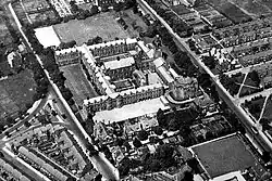 An engraving of the original school in the city centre