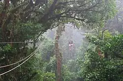 A canopy tour, spanning up to 1100 ft, overlooking the prestine