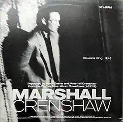 "Blues Is King" was released as the third track on Crenshaw's third album, Downtown, in 1985. Though it was not released commercially as a single, a promotional single with the song on both sides was released that same year to DJs.[5] The song has also appeared on the compilation This Is Easy: The Best of Marshall Crenshaw.