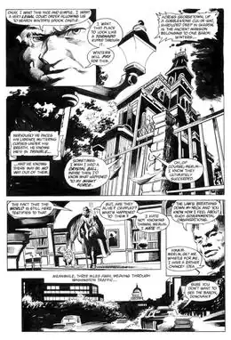 Bob Smith inks on Gene Colan pencil art for Night Force #8 (March 1983). Enlarge to see details, such as delicate lines for auto headlights glowing at bottom.