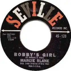 "Bobby's Girl" is a song and single written by Gary Klein and Henry Hoffman. The original was performed by American teenage singer Marcie Blane, and became a No. 3 hit on the US charts. A near-simultaneous cover by British singer Susan Maughan was a hit in the UK, coincidentally also reaching No. 3 on the UK charts.[2][3] Both Blane and Maughan are one-hit wonders; for both these artists, "Bobby's Girl" marked their only appearance on a national top 40 chart.