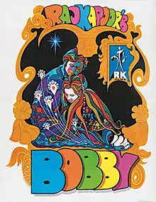 Bobby is a 1973 Indian Hindi-language musical romance film, produced and directed by Raj Kapoor, and written by Khwaja Ahmad Abbas.[2] The film stars Raj Kapoor's son, Rishi Kapoor, in his first leading role, opposite Dimple Kapadia in her debut role.[3] The film became a blockbuster securing the position of highest grossing Indian film of 1973,[4] the second highest grossing film of the 1970s at the Indian box office,[5] and one of the top 20 highest-grossing Indian films of all time (when adjusted for inflation).[6] It also became an overseas blockbuster in the Soviet Union, where it drew an audience of 62.6 million viewers,[7] making it one of the top 20 biggest box office hits of all time in the Soviet Union.[8][9]