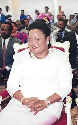 Bobi Ladawa Mobutu was known for promoting issues such as health, education and women's rights.[1] She was also customarily addressed as "Citizen Bobi" or "Mama Bobi", and frequently accompanied her husband abroad. Reportedly, she was involved in the corruption that occurred during Mobutu's rule. In 1996, a government minister who feared that he was about to be sacked in an upcoming cabinet reshuffle flew to Mobutu's palace at Gbadolite to visit the president and his family, carrying a million US dollars in his briefcase as a gift for Bobi Ladawa. When the reshuffle came, he was promoted to deputy prime minister.[4]