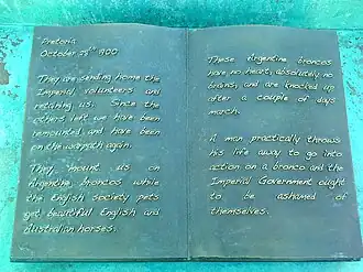 The Boer War Memorial in Canberra, Australian Capital Territory, is on Anzac Parade on the western row of memorials near Lake Burley Griffin. This commemorates the Military history of Australia during the Second Boer War, 1899-1902.[1]