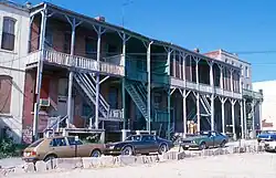 The eastern (rear) of the building, which once had wooden stairways and covered walkways for upstairs apartments.