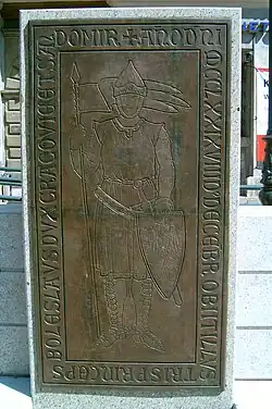 A copy of Bolesław's tombstone at the Little Market Square in Kraków .
