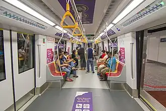 The Bombardier MOVIA C951 is the first generation electric multiple unit rolling stock in operation on the Downtown Line of Singapore's Mass Rapid Transit (MRT) system. The contract was won by Bombardier Transportation[6] (now Alstom) and the rolling stock was built by Changchun Bombardier Railway Vehicles (joint venture of Bombardier Transportation and CNR/CRRC Changchun).[1][7][8] Initially, the authorities had ordered 73 trains,[8] although LTA had ordered an additional 15 trains[8] and a final 4 more trains under C951A which makes a total of 92 trainsets were manufactured under C951.[2]