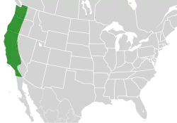Although historical data for insect distribution is sparse in western North America, it is clear that Bombus vosnesenskii is not experiencing a population decline; it is amongst the most common bee species on the West Coast of the United States, and the most common bumble bee from Oregon northward.[2] The nesting distribution ranges from British Columbia to Baja California.[3] Historically, Bombus occidentalis, the so-called "western bumble bee" was the most common species, with a distribution all the way from California to British Columbia and Alaska, but diseases introduced by commercial rearing operations in the eastern United States brought coastal populations of B. occidentallis to the brink of extinction, and B. vosnesenskii has filled the gap.[4] B. vosnesenskii's success in the vacuum left by B. occidentalis has not been the perfect story of nature finding balance after disturbance, however; in the San Francisco area, the frequency of B. vosnesenskii appearances to inversely correlate with the species richness of bees in the area, indicating that B. vosnesenskii outcompetes other bee species for space and resources. This may be due to the species' early emergence during the season, allowing it to overtake and monopolize available nest spaces.[5] The bee nests underground, primarily in colony sizes of about 200-300 workers. While it is not currently in population decline, studies have shown that the B. vosnesenskii experiences reduced nesting density in urbanized landscapes.[6] In a case study from Santa Barbara, CA - researchers found that local grassland restoration can help support provide habitat refugia for these species in urbanized areas.[7]