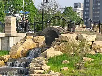 Boneyard Creek is a 3.3-mile-long (5.3 km)[2] waterway that drains much of the cities of Champaign and Urbana, Illinois, United States.[3] It is a tributary of the Saline Branch of the Salt Fork Vermilion River, which is a tributary of the south-flowing Vermilion River and the Wabash River. The creek flows through the northern sections of the campus of the University of Illinois Urbana-Champaign. The newsletter of the university's ACM chapter is Banks of the Boneyard, named after the creek.
