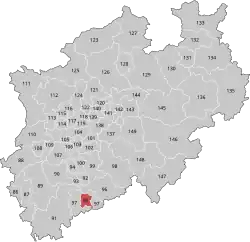 Bonn is located in southwestern North Rhine-Westphalia. As of the 2021 federal election, it is coterminous with the independent city of Bonn.[1]