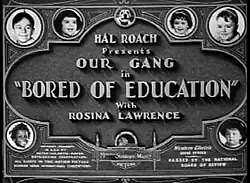 Bored of Education is a 1936 Our Gang short comedy film directed by Gordon Douglas.[1] Produced by Hal Roach and released to theaters by Metro-Goldwyn-Mayer, it was the 146th entry in the Our Gang series to be released.[2]