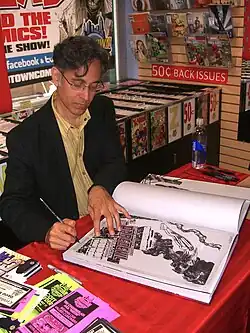 David Mazzucchelli autographing a copy of the Artist's Edition at Midtown Comics in Manhattan on June 28, 2012