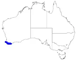Karri boronia grows in shady places in gullies and granite outcrops in the Esperance Plains, Jarrah Forest and Warren biogeographic regions of Western Australia.[2]