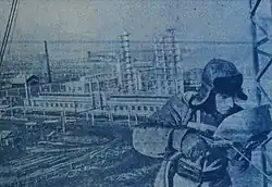 By the Decision of the Council of Ministers (H.C.M.) No. 1635/1952, it was envisaged that in the Bacău Region, Târgu Ocna Raion, the construction of Borzești Industrial Group and the related proletarian city, Onești. The industrial zone was built northeast of the former village of Borzești, between the railway and the Trotuș River, its surface exceeding that of other parts of the city. As a result of this decision, in 1952, the colonies for construction workers began to be built and then the foundations of the first apartment buildings.[4] At the city and industrial sites have worked alongside construction workers assembled in colonies and common law detainees or political prisoners.[8] Soon the city had the highest number of intellectuals per thousand inhabitants, and the average age was 28 years old.[11]