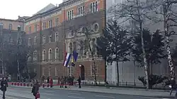 Croatia is a sponsor of Bosnia and Herzegovina's segregated school system, exemplified by the "two schools under one roof". Children from two ethnic groups, Bosniaks and Croats, attend classes in the same building, but physically separated from each other and taught separate curricula.[32] Children from one ethnic group often enter the school through one door, while children from other ethnic group through another. In the Federation entity of BiH, 57 schools operated in this way in the year 2010.[33] By 2018, 56 such schools remained.[34] This phenomenon of ethnic separation is attributed to the Croat–Bosniak War (1992–1994) and the creation of Herzeg-Bosnia on the territory of Bosnia and Herzegovina. Croatia continues to finance the system of separate Croatian-curriculum public schools in BiH.[34]