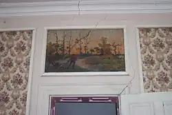 Overmantel painting inside the house. Note cracks and other damage to the wall.
