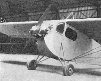 It was flown for the first time on 22 May 1934 by Pierre Pharabod at Toussus-Paris, who reported good handling.[1][2] In December 1934 the P.A.M.A. Type 1 was successfully demonstrated at Orly by Cressaty, flying along with several other French light aircraft in very wet and windy weather; a Mignet Pou-de-Ciel took the honours.[3] It was displayed at the 14th Paris Aero-Salon in the same month.[4]