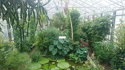 Plants of the rainforest, succulents and crops such as cinnamon, coffee or vanilla are shown in a 1998 newly built large tropical green house with two pools and a grandstand. A special attraction is the basin with the Victoria water lily. In 2007, an orchid house was added to the tropical house. In an Alpine house, built in 1993 in an unusual architecture, the alpine flora is housed. Furthermore, there is the small carnivorous planthouse, an extra greenhouse for carnivorous plants, as well as a lithops house, in which living stones are shown.