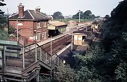 The station was a major loading point for strawberry traffic until about 1940, with trains taking the local produce up to London. The station possessed an extensive network of sidings and loading bays for this seasonal traffic and for storing the special ventilated vans that transported the fruit. The goods yard is now occupied by the Aggregate Industries stone plant. All traffic declined from 1950 onwards, but passenger numbers began to build again in the 1990s with the re-introduction of direct services to London for the first time since before the war. The line was electrified, on the 3rd rail system, in the 1990s. The station and route was again closed due to a land slip on 31 January 2014.[3] The line reopened on 15 March 2014.[4]