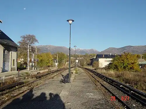 Bourg-Madame is a railway station in Bourg-Madame, Occitanie, France. The station is on the Ligne de Cerdagne. The line is a narrow gauge line at 1,000 mm (3 ft 3 3⁄8 in) and has a third rail pickup at 750 V DC (3rd Rail). The station is served by TER Occitanie (local) trains (known as Train Jaune) operated by the SNCF.