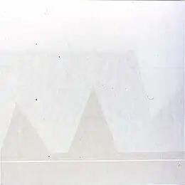 The painting comprises acrylic paint on canvas. Completed in 1975, Bovadra is an abstract artwork that features sharp, at times triangular shapes, in grey and white shades. It is almost landscape-like in appearance.[1]