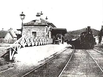 The sandstone station opened on 18 October 1869 with the construction of the railway and was electrified in 1957 as part of the Blue Mountains line electrification programme. The electrification was to continue to Wallerawang but was curtailed 300 metres (980 ft) west of Bowenfels station.[2][3] On 14 August 1972, the station staff were removed and two of the three daily passenger services were cut back to Lithgow, with the remaining service following on 21 September 1974 and the station closed.[2][3][4]