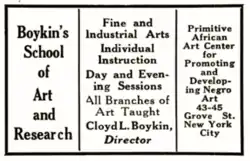 Boykin's School of Art appears to have started around 1915 in Boston,[2] followed by a period in the 1920s in Atlantic City.[3][4] It was first art school for African Americans in New York City when it opened at that location in 1929. It was founded by artist Cloyd Lee Boykin (c. 1877–1957).[5] The school taught a wide range of subjects including fine arts, commercial arts, industrial arts, and crafts.[6][1] In the 1930s, this school was an important meeting place for Black artists and intellectuals, particularly those associated with the Harlem Renaissance.[7]