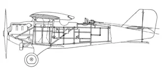 The engine mountings of the Breguet 25 could accommodate a Lorraine 12E Courlis W12, a Renault V12, a Hispano-Suiza 12G W12 or a Hispano-Suiza 12H V12, all with power in the range 340–360 kW (450–480 hp). A photo and drawing of the aircraft in June 1925 show it with a V12, rather than a W12 engine and with its retractable radiator mounted below the engine. Behind the engine the fuselage had a structure of steel tubes held together by moulded connections.[2] The engine mounting and forward fuselage, including the cockpit area, were covered in light metal. The pilot's open cockpit was under the trailing edge of the upper wing, which had a large cutout to allow him to see upwards; his forward view was between the wing and the fuselage. He controlled four fixed machine guns, a pair of Vickers guns firing through the propeller and a pair of Darnes on the wings. The gunner's post had three machine guns, with a pair of Lewis guns on a flexible mount and a third firing downwards and rearwards.[1]