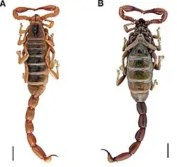- ^ a b José A. Ochoai; André S.A. Ojanguren Affilastro (April 2007). "Systematics and distribution of Brachistosternus (Brachistosternus) ehrenbergii (Gervais, 1841), with the first record of stridulation in this genus Brachistosternus (Scorpiones: Bothriuridae)" (PDF). Studies on Neotropical Fauna and Environment. 42 (1): 61. Bibcode:2007SNFE...42...61O. doi:10.1080/01650520600800310. Retrieved February 5, 2014.