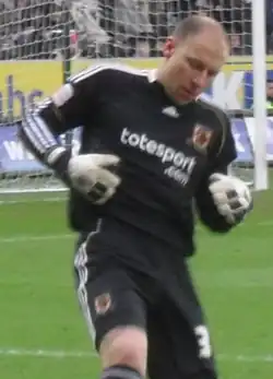 On December 31, 2010, Guzan was loaned to Football League Championship side Hull City on a one-month loan deal.[9] He made his debut for Hull on New Year's Day 2011, a 1–0 loss to Leicester City.[10] His second appearance for the club ended on a higher note, as his team went on to win 2–3 at Portsmouth.[11] He kept his first clean sheet for the club against Barnsley in a 2–0 win for Hull.[12] On January 25, Guzan extended his loan until the end of February.[13] He made a total of 11 league appearances for Hull before returning to Aston Villa on February 28.[14]
