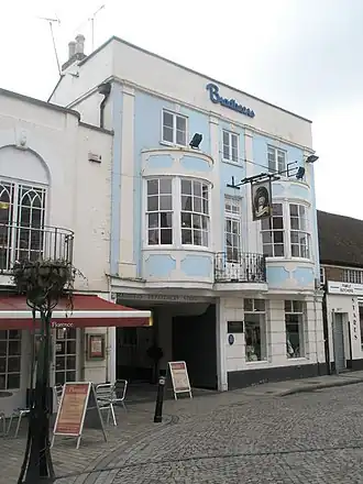 The Romsey branch, situated at 14–20 Bell Street, Romsey, Hampshire, was opened in a building formerly known as the Dolphin Inn and expanded by buying up adjoining properties in the 1960s and 1970s. A Major expansion which doubled the floor area and included the installation of an escalator and provision of two new restaurants was complete in 2003.[3] The building is reportedly haunted by the ghost of a white or blue lady who has been sighted in the older parts of the store.[4] This branch sells a range of products including clothing, cosmetics, jewellery, homeware and luggage.