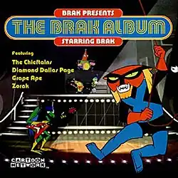 In 2000, the soundtrack Brak Presents the Brak Album Starring Brak was released. The 30 tracks are taken in order from the two "Brak Presents the Brak Show Starring Brak" specials, with the exception of the three bonus tracks and a re-recording of "We're Buds" which was originally a duet between Brak and Jo Dee Messina, but appears on the album with Brak singing both parts.
