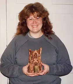 ![]() Nancy A. Collins holding the Bram Stoker Award | |