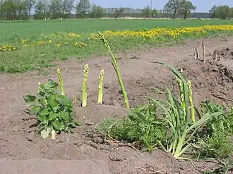 Very famous and almost internationally known is the asparagus grown in the surroundings of Beelitz. Most of the yieldings are sold in the area and especially to Berlin where during the asparagus season many restaurants offer Beelitzer Spargel mit Kartoffeln und Sauce Hollandaise (asparagus with potatoes and hollandaise sauce).