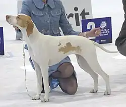 The Braque Saint-Germain (translated into English as the St. Germain Pointing Dog) is a medium-large breed of dog, a versatile hunter used for hunting as a gun dog and pointer as well as for hunting other small game. Braque is a term meaning pointing dogs. The breed was created around 1830 by crossing English and French pointing type dogs.