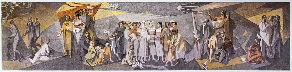 A composite view of the large Socialist Realist fresco by František Gajdoš