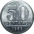 Cr$0.50 | 17 mm | 1956 | Portrays the coat of arms of Brazil |