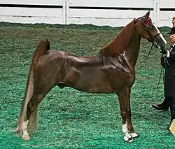 Breaking News is an American Saddlebred horse who won the Saddlebred Triple Crown in 2008, meaning he won the five-gaited stake in the Lexington Junior League Horse Show, the Five-Gaited World's Grand Championship in the World's Championship Horse Show, and the five-gaited stake in the American Royal Horse Show in the same year.