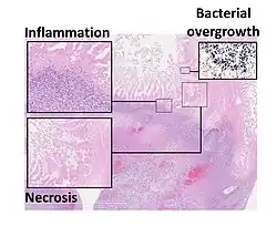 13. ^ a b c Raba, AA; O'Sullivan, A; Miletin, J (2020-09-28). "Pathogenesis of necrotising enterocolitis: The impact of the altered gut microbiota and antibiotic exposure in preterm infants". Acta Paediatrica. 110 (2): 433–40. doi:10.1111/apa.15559. ISSN 0803-5253. PMID 32876963. S2CID 221465513.