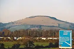 The hill is 137 metres (449 ft) high[3] dominates the low surrounding landscape of the Somerset Levels and is visible from the M5 motorway.