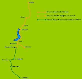 A line between Brescia and Iseo was opened on 21 June 1885,[1] and connected to Edolo in 1909.[2]