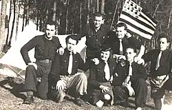 Breton resistors near Saint-Nazaire with the flag of Brittany, probably photographed after the Liberation