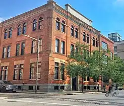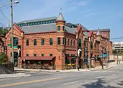 Located at the district's center on South Front Street, this architecturally ornate structure was built to house horses for the attached Hoster Brewery.[12] More recently, from 1996 to 2011 it was the home of WWCD, also known as CD101 or CD102.5, a local independent alternative rock station. In 2011 it was renovated to accommodate its most recent tenants: World of Beer, Shadowbox Live and the attached Backstage Bistro.[13]
