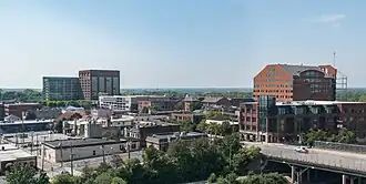The Transitional Tier is very much in transition, with large blocks of land purchased to make way for development. This tier is bordered by Sycamore on the north, Pearl Street on the east, Frankfort on the south and the Conrail tracks on the west.[1]