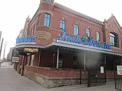 The Northern Tier is bounded by 1–70 on the north, Pearl Street on the east, Sycamore on the south and Short Street on the west.[1] This tier is close to the Scioto River and has much of the district's earliest development. It is characterized by its remaining historic, industrial buildings featuring much brick and having very little to no setback. Some industry still remains in this tier, but the area has experienced large-scale re-development. The Germania Singing and Sport Society building, the former Schlee Mansion, is the oldest building on Front Street. This building, at 543 S. Front Street, (photo to the right) and its carriage house both appear in a 1870 city plat. The Schlee Brewery was recently adapted for mixed-use, including some residential units and specialty commercial spaces. This Schlee Brewery project and others have set the tone for this tier's re-development. In July 2019, it was announced that the L. Hoster Brewing Company site (including the former Wasserstrom Building) at Front Street and Livingston Avenue would have a $70 million redevelopment. The Hoster site is proposed to include a hotel and restaurant.