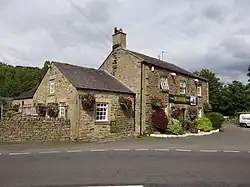 The North and South Tyne meet less than one kilometre downstream from the village. There is a pleasant walk from the Boat Inn along the bank of the South Tyne to the meeting of the waters. The Boat Inn was formerly the place of a ferry until the toll bridge was built across the river. The toll house still stands, but the old bridge was replaced in 1904 by a County structure.[1] One of the two plaques on the bridge records that the contractor was W. T. Weir of Howdon-on-Tyne. The Newcastle and Carlisle Railway crosses the river by a strongly built iron bridge.[1]