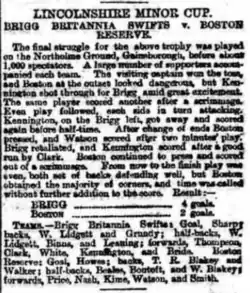 - ^ "Brigg Town Football Club". Retford, Gainsborough & Worksop Times: 3. 6 September 1889.